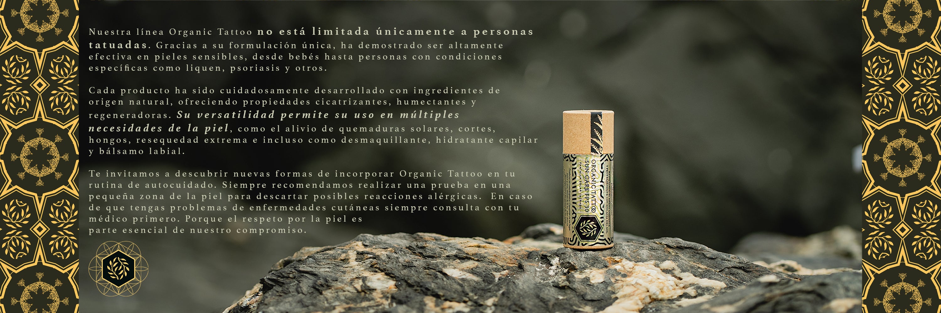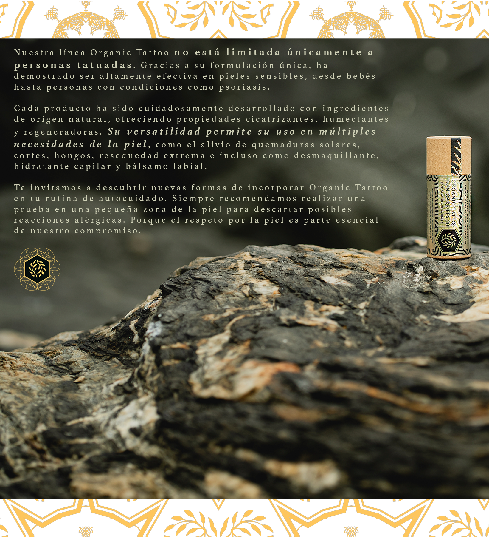 "Llevamos tres años usando Organic Tattoo no solo para el cuidado de los tatuajes, sino también para otras necesidades de la piel. Como bálsamo labial, funciona increíble, y además mantiene la piel muy hidratada, ayudando a que los colores del tatuaje se conserven con el tiempo. Es una linea que realmente vale la pena."